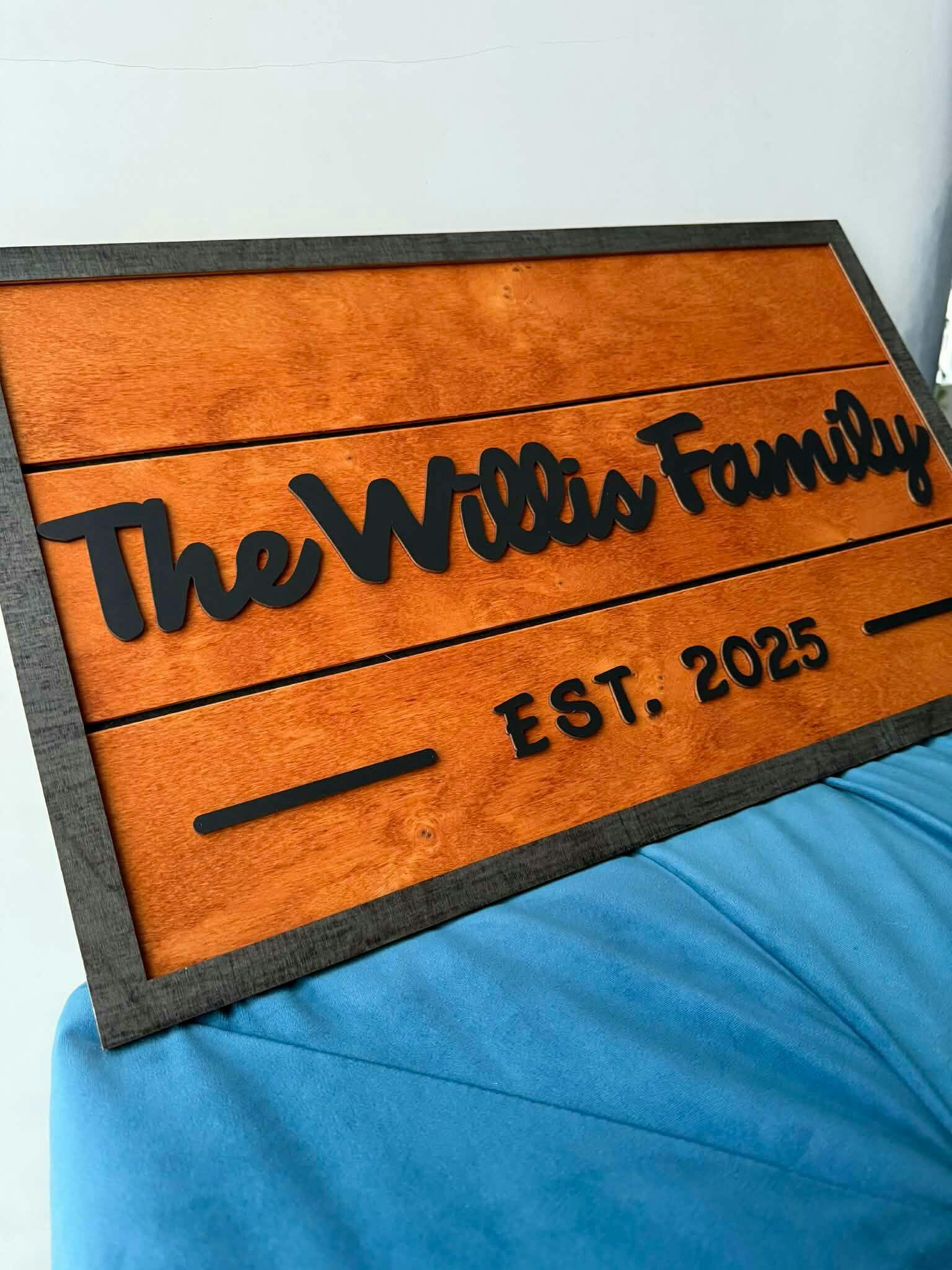 Personalized Family Last Name Wood Sign – Custom Farmhouse Home Decor, Established Date (Orange)