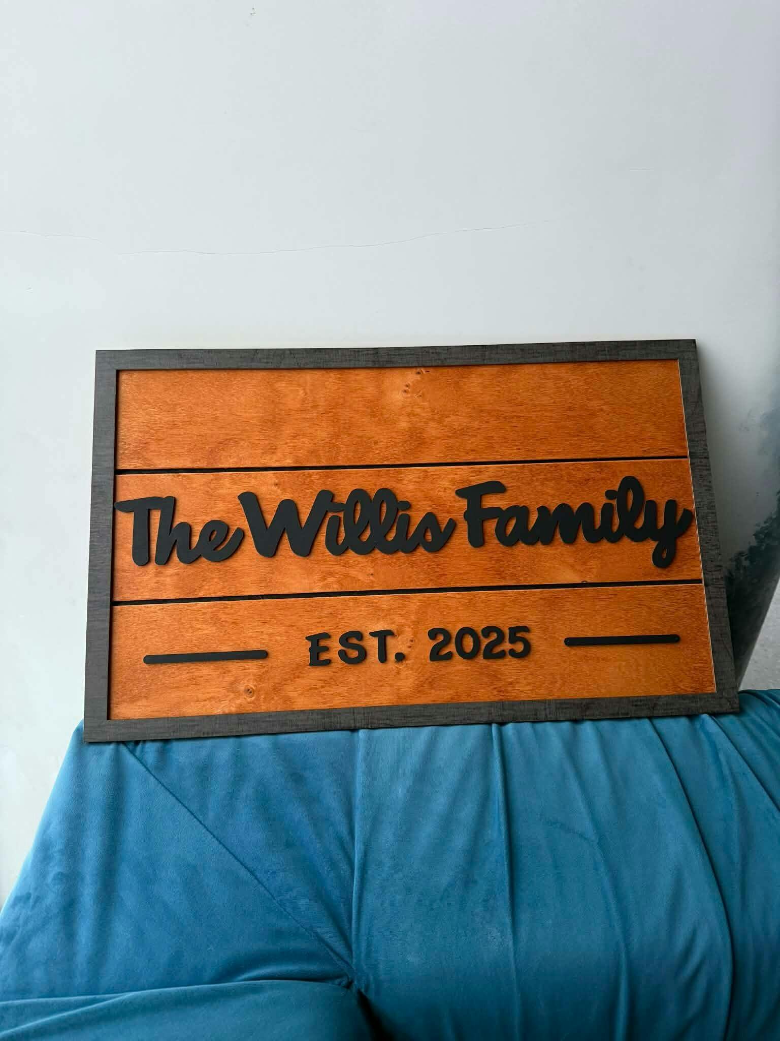 This handcrafted farmhouse-style sign is customized with your family last name and established year, creating a timeless piece of home decor filled with warmth and meaning.