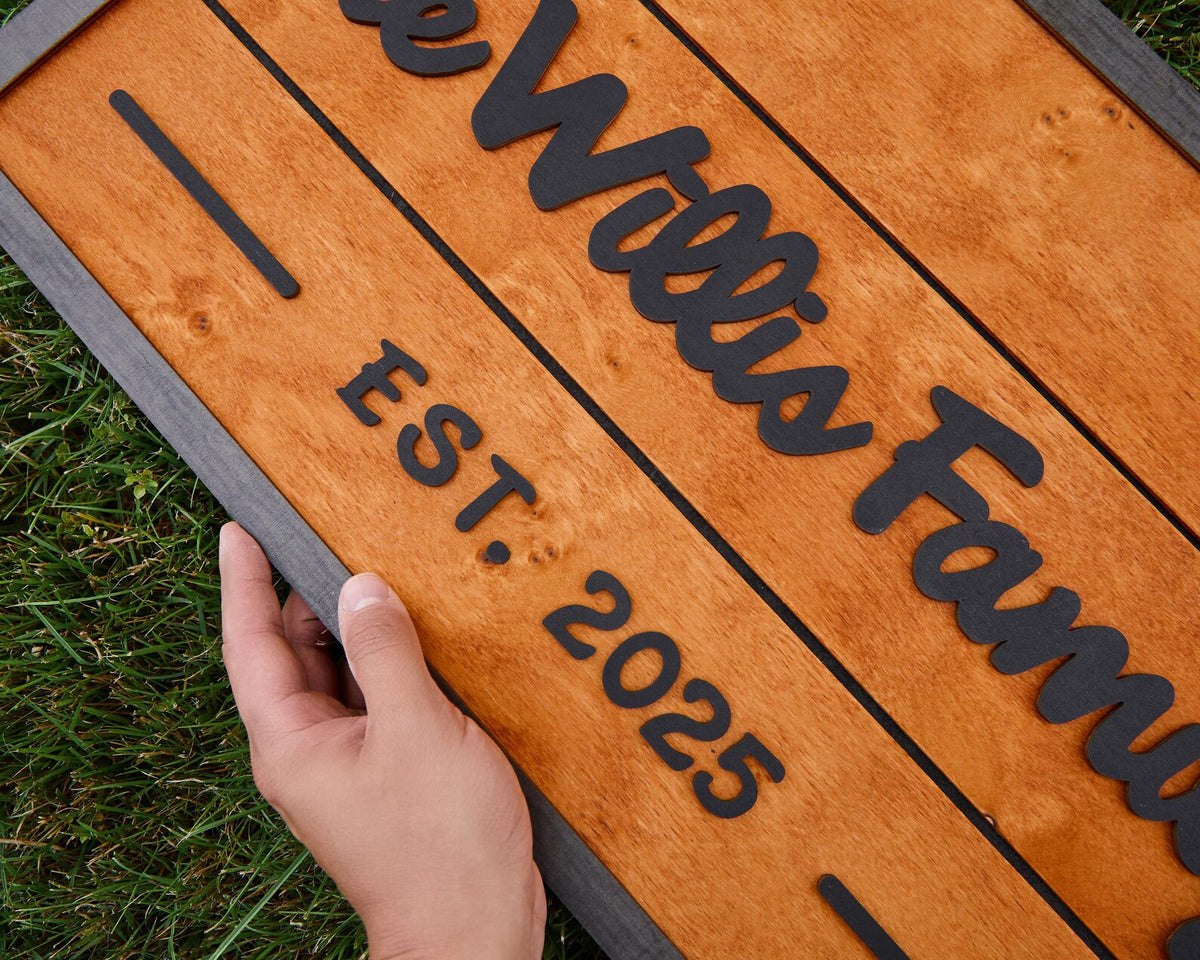 Our custom 3D family name signs are a perfect addition to your home that can be treasured for years to come. these signs make great gifts for weddings, anniversaries, birthdays and more! Add a personal touch to your home decor with our Custom Wood Family Name Sign. This elegant sign is perfect for weddings, anniversaries, or as a unique gift for loved ones. Each sign is crafted with great care from premium materials to ensure long-lasting beauty.