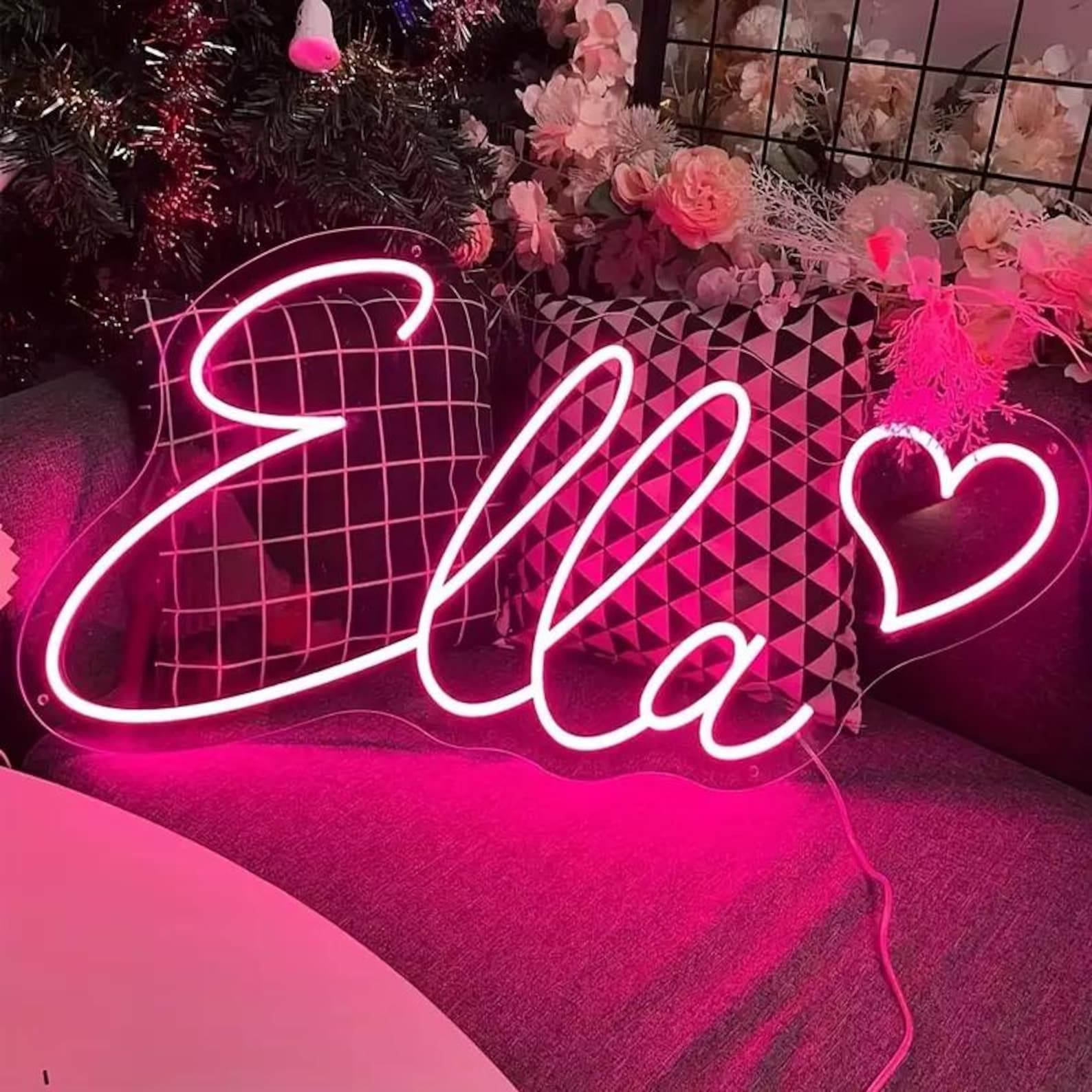 Transform your space into a glowing masterpiece with our Personalized LED Neon Name Sign. Designed with elegant script and a delicate heart detail, this custom piece adds sophistication, warmth, and charm to any room.
